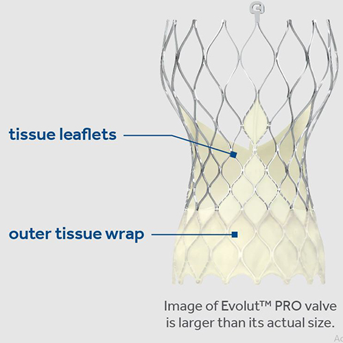 The Evolut™ PRO valve has tissue leaflets and an outer wrap made from pig heart tissue.